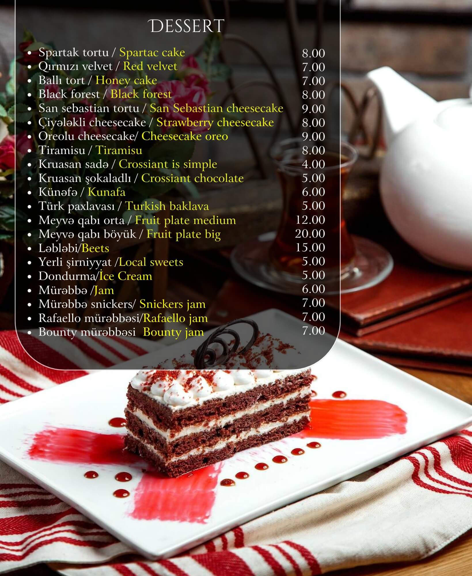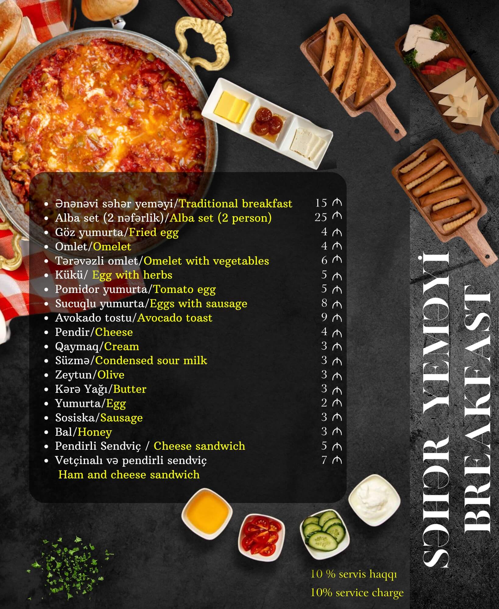 Indulge in a diverse menu that showcases the best of Azerbaijani and European cuisine. Our talented chefs use the freshest ingredients to craft a wide array of dishes that cater to every palate. From traditional Azerbaijani specialties bursting with local flavors to sophisticated European dishes, our menu offers something for everyone. Enjoy hearty breakfasts, elegant lunches, and sumptuous dinners, all prepared with the utmost care and attention to detail. Our culinary team is dedicated to providing a dining experience that delights and satisfies, ensuring every meal at Alba Terrace is a memorable one.